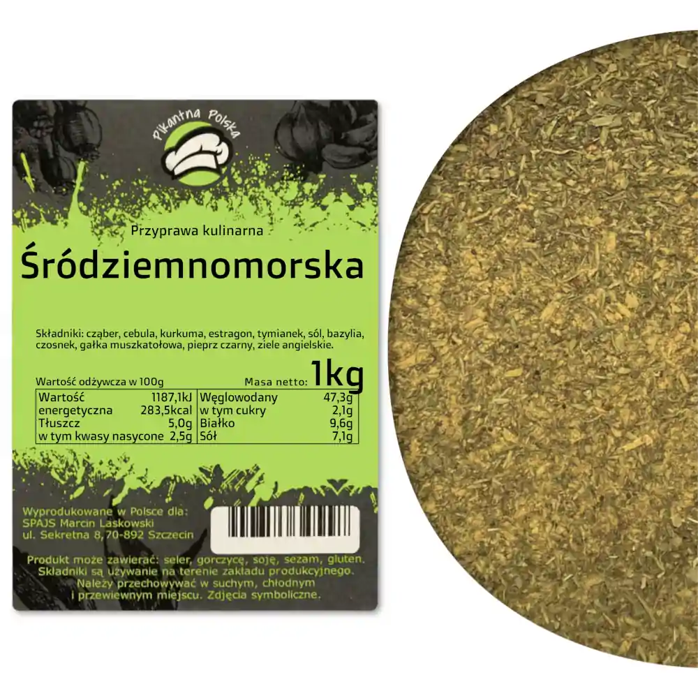 Przyprawa Śródziemnomorska to wyjątkowa mieszanka ziół i przypraw, inspirowana tradycyjną kuchnią basenu Morza Śródziemnego. Dzięki starannie dobranym składnikom, takim jak oregano, bazylia, tymianek, rozmaryn, czosnek i suszone pomidory, dodaje potrawom głębi smaku i aromatu prosto z południowych regionów Europy.